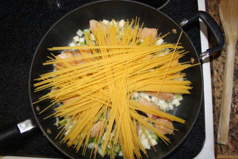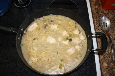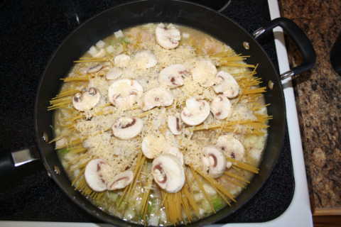 I love the smell of onions sauteing in butter. It fills my kitchen with the kind of enticing and savory smells that make a house feel like a home. Also, since I don't like doing dishes, I love meals that come together in one pan. This chicken tetrazinni smells and tastes yummy and comes together in one pan and a mixing bowl. I found the recipe in one of those church community cookbooks--those are the best! This is a nice, comforting meal for Fall. Feeds 4. Chicken Tetrazzini 4 tablespoon butter 1 can cream of mushroom soup ½ cup grated parmesan cheese 1 onion, chopped ¼ tsp salt ½ tsp pepper ½ tsp paprika 3 mushrooms, sliced 6 oz uncooked spaghetti 2 cups cubed raw chicken 2 cups chicken broth ½ cup celery, diced