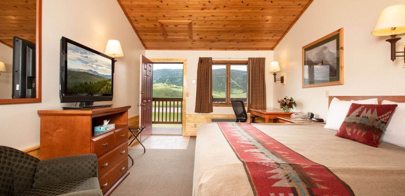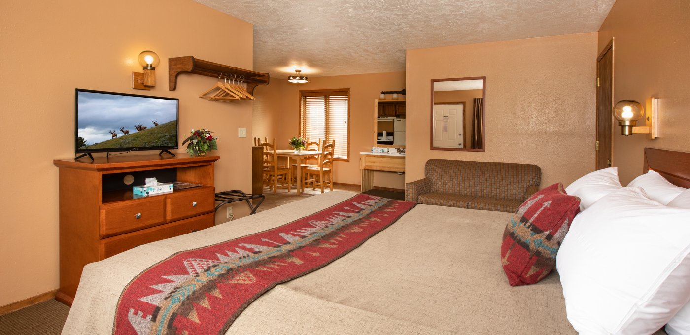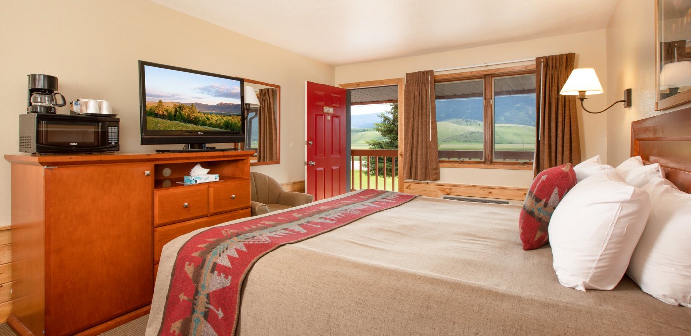 Flat Creek Inn offers a variety of spacious, comfortable room types to suit families, couples, and single travelers. Each room features free Wi-Fi, a flat-screen TV, coffee maker, microwave, mini-fridge, air conditioning, and unmatched views of the National Elk Refuge.