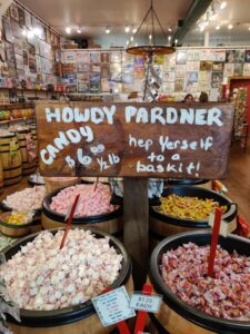 There is one store in Jackson Hole that is sure to delight both young and old alike - the Yippy I-O Candy Co. This store is a veritable feast for the eyes just as much as a feast for the belly. Inside you can find every type of candy imaginable. Let's go take a look! Inside the Candy Store [caption id="attachment_2578" align="aligncenter" width="360"] The main entrance.[/caption] As soon as you walk into the store you will see this darling sign and a stack of little baskets. [caption id="at...